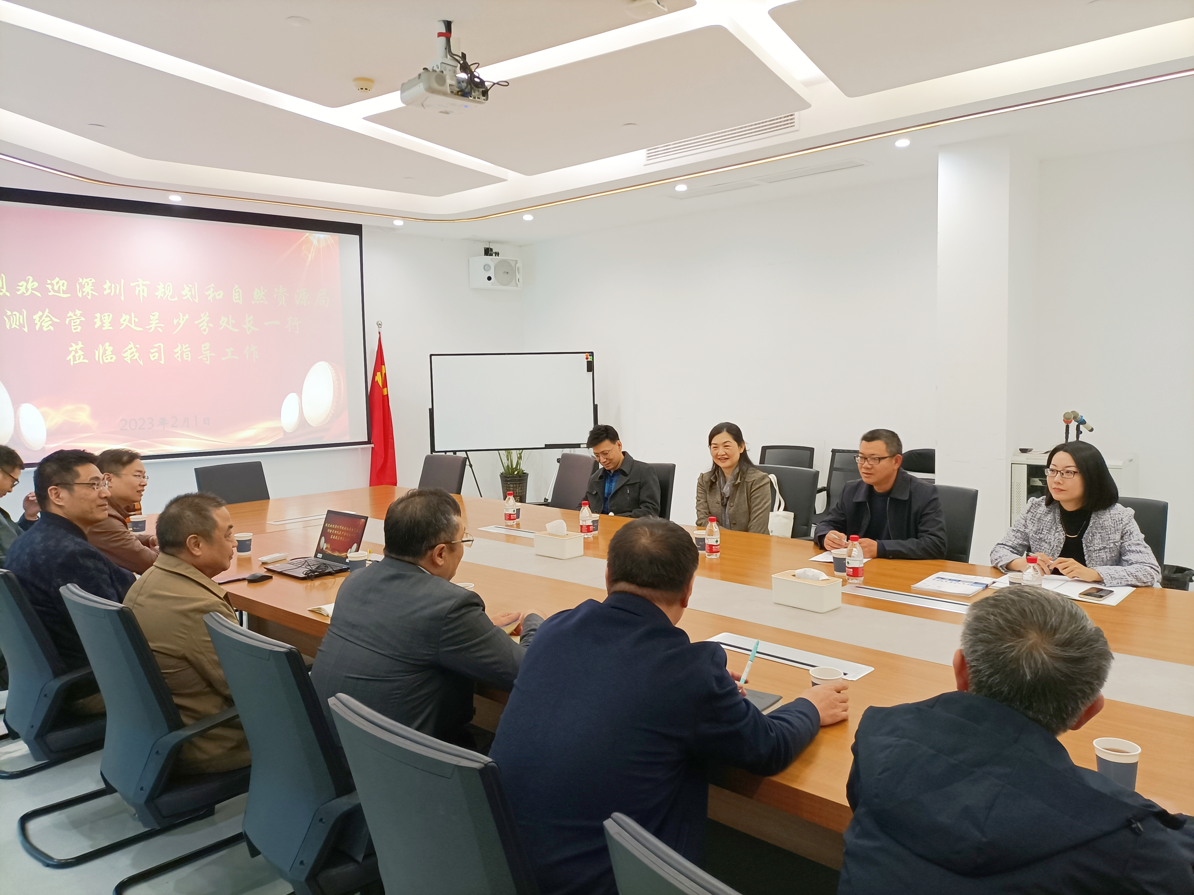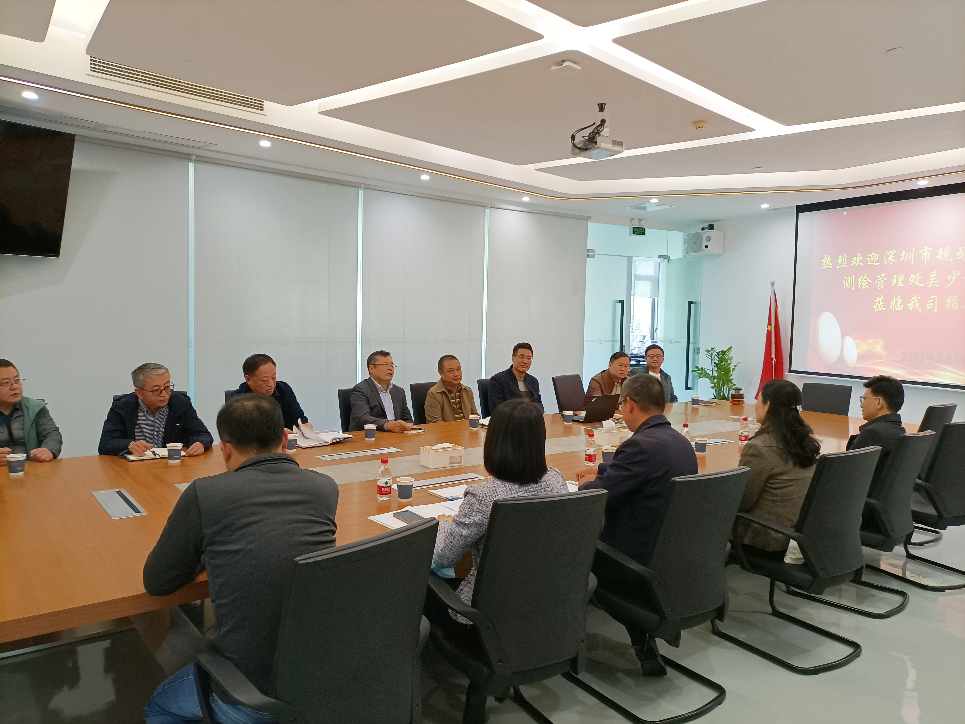 2023年2月1日下午,深圳市规划和自然资源局测绘管理处吴少芬处长带队来我司就春节后测绘安全生产工作进行检查和指导,并就测绘行业,尤其是地理信息产业的发展动向进行了深入的交流,我司王双龙总经理携经营管理班子及相关专业公司负责人等进行了热情的接待。