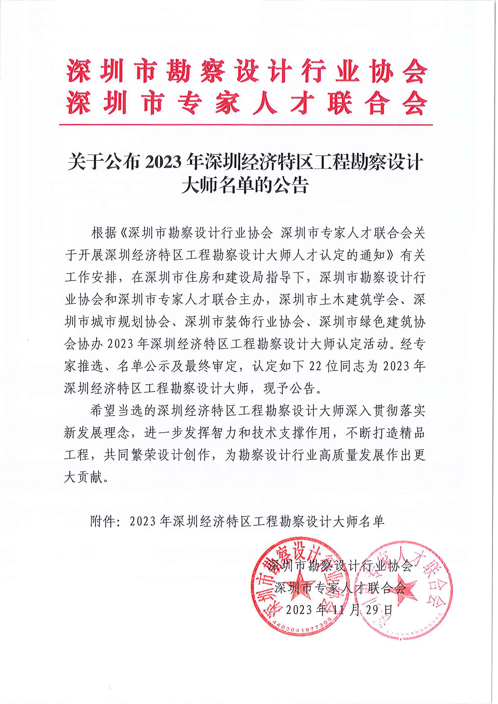 经深圳经济特区工程勘察设计大师认定工作委员会及行业专家评审,2023年深圳经济特区工程勘察设计大师候选人名单揭晓,我司张先亮副总经理榜上有名,评获工程勘察设计大师(勘察专业共两人)。
