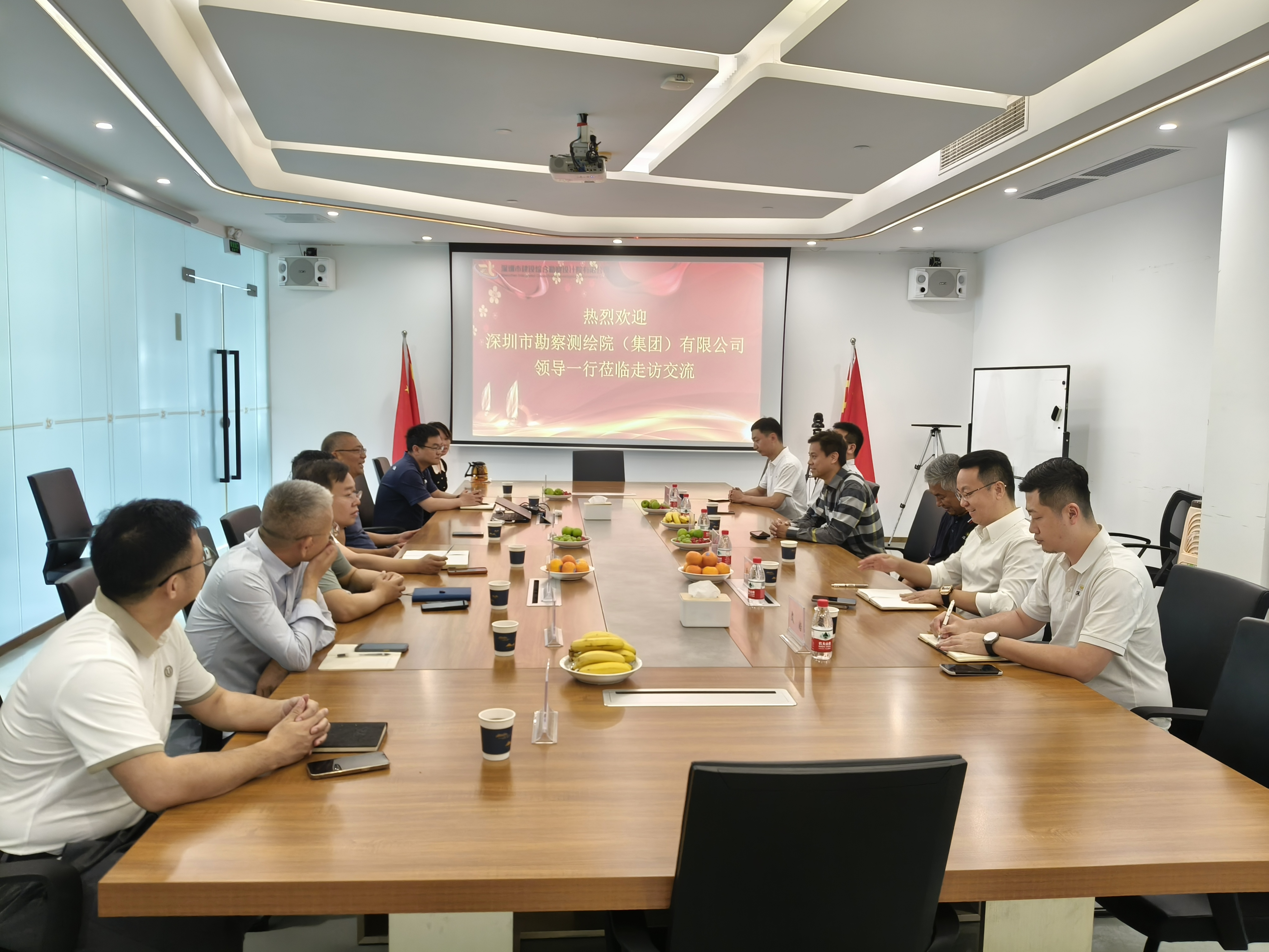 4月17日下午,深圳市勘察测绘院(集团)有限公司(以下简称“深勘集团”)董事长蔡衍钻、总经理齐明柱、测绘公司总经理张加粮、咨询公司总经理贾海鹏等相关部门负责人莅临AK官方网站(以下简称“我司”)并座谈交流,我司副董事长张文华、总经理王硕、副总经理易宙子携相关管理人员热情接待并全程陪同。