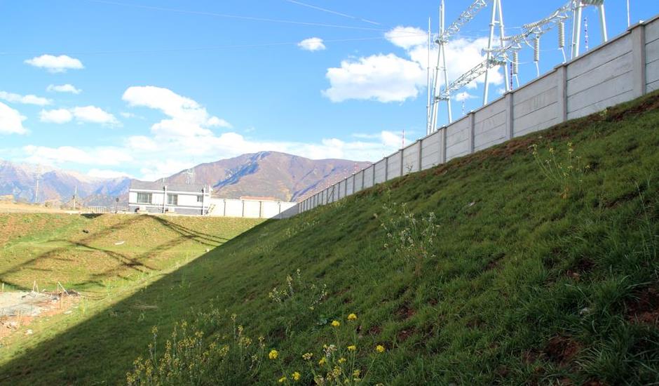 变电站址布置于弃土场和原状山坡之间,地形高差变化大,受进站道路条件的限制,工程建设需深挖高填,四周形成垂直高度达10~33m的挖填方边坡,站场标高125.7m,边坡工程安全等级为一级。