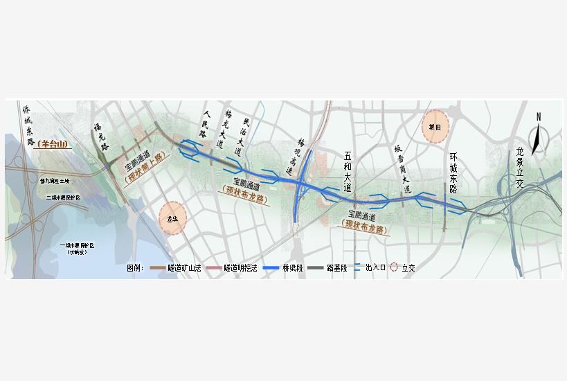 项目概况:起于滨江大道,终于南坪三期,全长约53公里,按照城市快速路标准建设。近期实施范围起于侨城东路,东至龙景立交,全长10公里,其中隧道段长2.8公里,桥梁段长6公里,主线双向6~8车道,总投资61亿元。