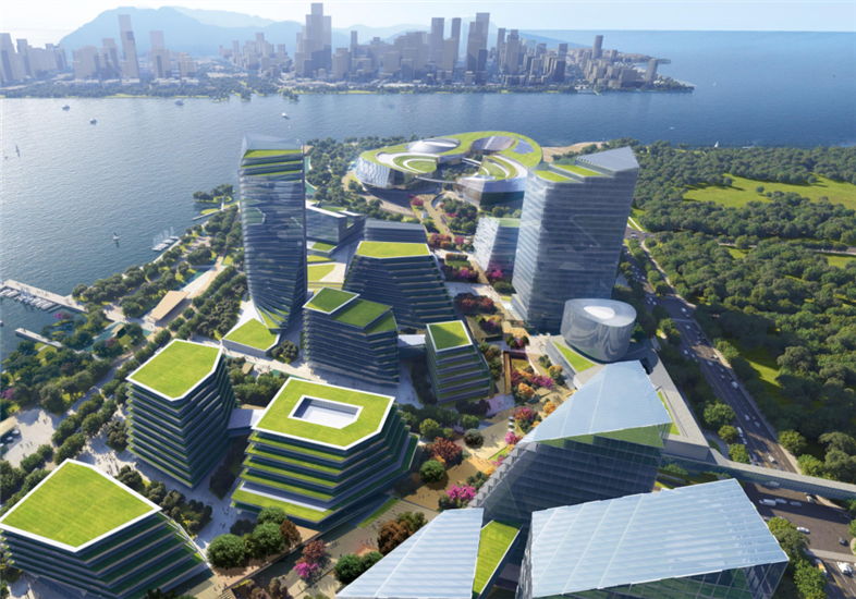 腾讯大铲湾项目位于深圳市宝安区大铲湾码头东侧,金港大道以东。地处珠江入海口东岸,毗邻深圳宝安国际机场、宝安中心区、前海自贸区,地处粤港澳湾区的核心位置,腾讯-大铲湾“互联网+未来科技城”将落户于此。本项目总建设规划用地面积约132.6万㎡,由南向北依次被纬五、纬四、纬三、纬二四条主要道路分割为5个地块。